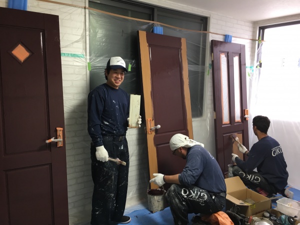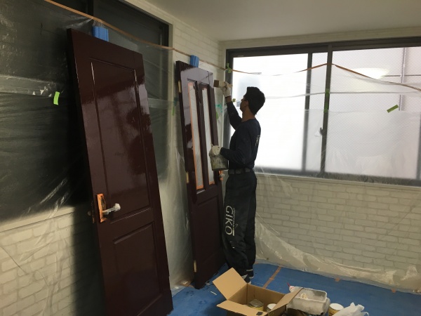 4月172018塗装職人ブログ施工事例現在何と一軒丸々建具のエイジング施行中です!みんなで下塗り(ベース)ぬりぬりですクラックアップさせてます‼️これからエイジングスタートです(^ ^)一生懸命頑張ります^_^いつも通り120%のポテンシャルを発揮します!
