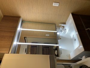 LED内蔵の洗面台になりました。自動水栓でとっても便利になりましたとの事^_^