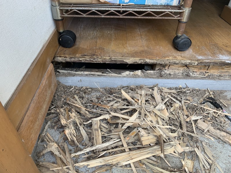 7月12021塗装職人ブログ施工事例先日、雨の次の晴れた日にたまたまお客様のお宅に伺ったら換気口から羽蟻が出てきました。 もしやと思って蟻道を探したらやはり数本ありましたので即 防蟻処理をしました。 良く調べると結構やられておりました‼️ でも大丈夫です。シロアリ駆除も含め迅速に対応😃😃 皆様も羽蟻等いたら気にしてみて下さい。梅雨期は特に動きが良くなりますから‼️ 因みにこれは勝手口です。