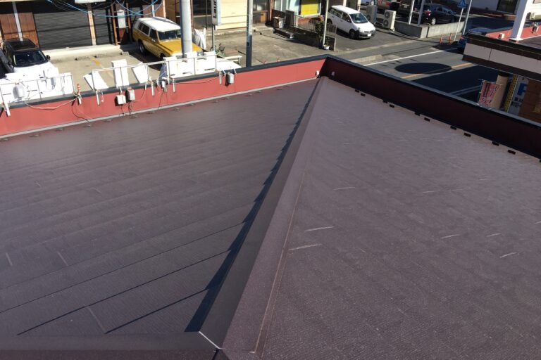 今回は商業施設のコロニアル改修工事です。 築25年ほどでしょうか。 屋根材の割れ、脱落等見受けられました。 今回はガルバリューム鋼板の高耐候塗装仕様なので当分(20年位)は大丈夫です👌 綺麗に出来上がりました。 ありがと…