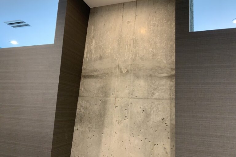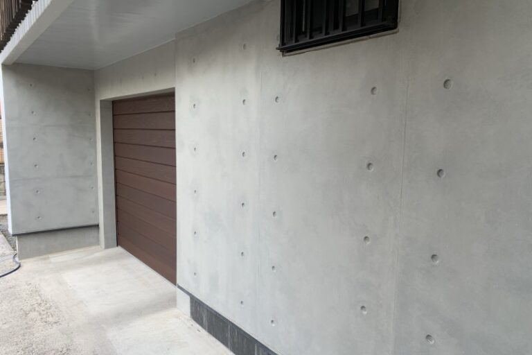 今回は単色塗装の外壁をコンクリート打ち放しにして欲しいとのご依頼です。弊社は擬石や擬木等々、得意分野なのでお客様からのご相談、ご依頼も増えてきております。今回は玄関廻りを施工致しました。上の写真は平坦な壁をパネルのように…