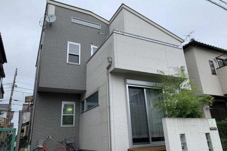今回はお客様にご理解頂きまして、色々な工法、材料を使用して施工させていただきました。 白い壁部分はナノコンポジットフッ素に塗り替え致しました。グレーのサイディング部分は無機クリアーに塗装致しております。ナノコンポジットも…