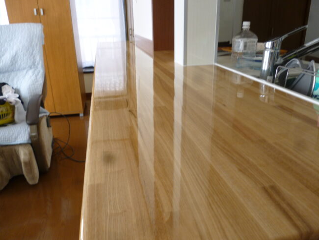 自社制作の研ぎ出しのカウンターをご紹介します。 久喜市のD邸に施工いたしました 数十工程を経て約7~10日で仕上がります。 興味のある方はお気軽にお問合せ下さい。 「鏡面仕上げ」 というように鏡面になります…