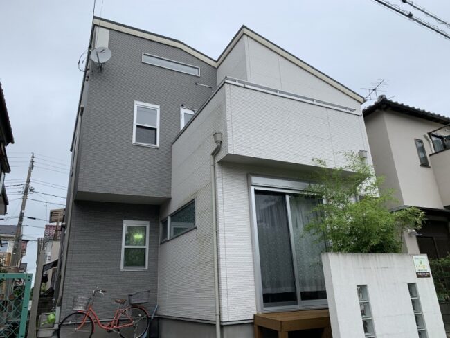 今回はお客様にご理解頂きまして、色々な工法、材料を使用して施工させていただきました。 白い壁部分はナノコンポジットフッ素に塗り替え致しました。グレーのサイディング部分は無機クリアーに塗装致しております。ナノコンポジットも…