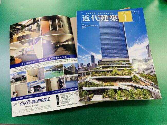 この度 近代建築の見開き1ページに掲載する事になりました‼️ 設計事務所様、近代建築社様等々の ご好意により載せて頂きました。 弊社では内外装を問わず良いものをお客様にお届け出来ますよう頑張ってまいりたいと思っております…