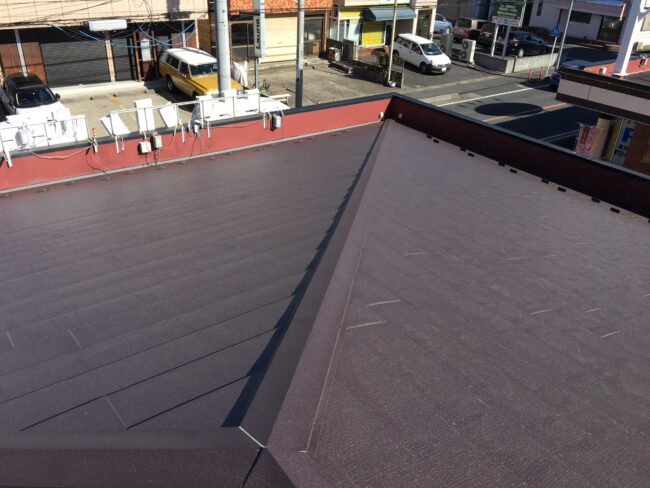 今回は商業施設のコロニアル改修工事です。 築25年ほどでしょうか。 屋根材の割れ、脱落等見受けられました。 今回はガルバリューム鋼板の高耐候塗装仕様なので当分(20年位)は大丈夫です👌 綺麗に出来上がりました。 ありがと…