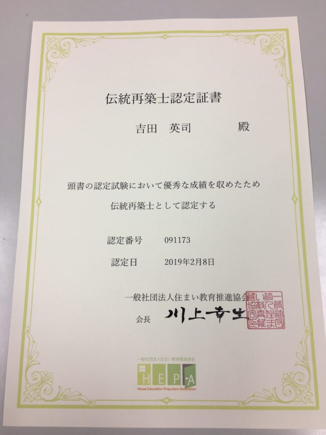 吉田技工では古民家再生に向けて突き進んでおります! 古民家の再生は規制もなく非常に難しいものでしたが この度、建築士を対象にした伝統再築士の資格を取得致しました。この取得により構造計算を含め古民家再生が可能になり、又 今…