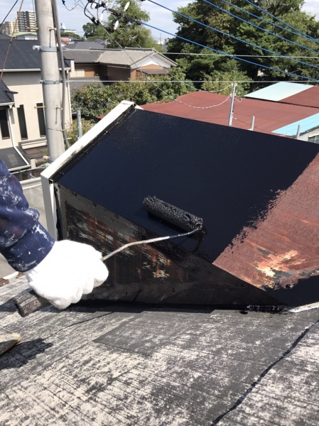 9月192017施工事例埼玉県地方はおかげさまで甚大な被害も出ませんでした。又、台風被害に会われた皆様には心より大変な思いをされておりますことご察し致します。快晴の中屋根塗装スタートです^_^ サビがひどいのでピュアエポキシ樹脂から塗布です。これ位になると2液型の錆止めでも効きません。半年位でサビが発生しちゃいますよ! ガッチリピュアエポキシ樹脂でサビを封じますよ^_^もう2度と錆びません‼︎完璧です(^^)