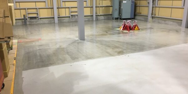 大型トラックの整備場の為、硬質ウレタン床で通常のエポキシ床のはじきをを解消です‼︎