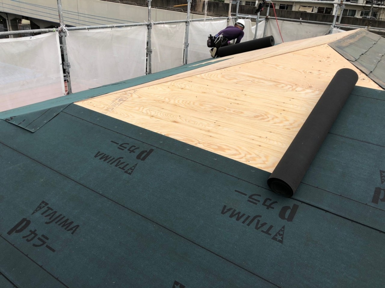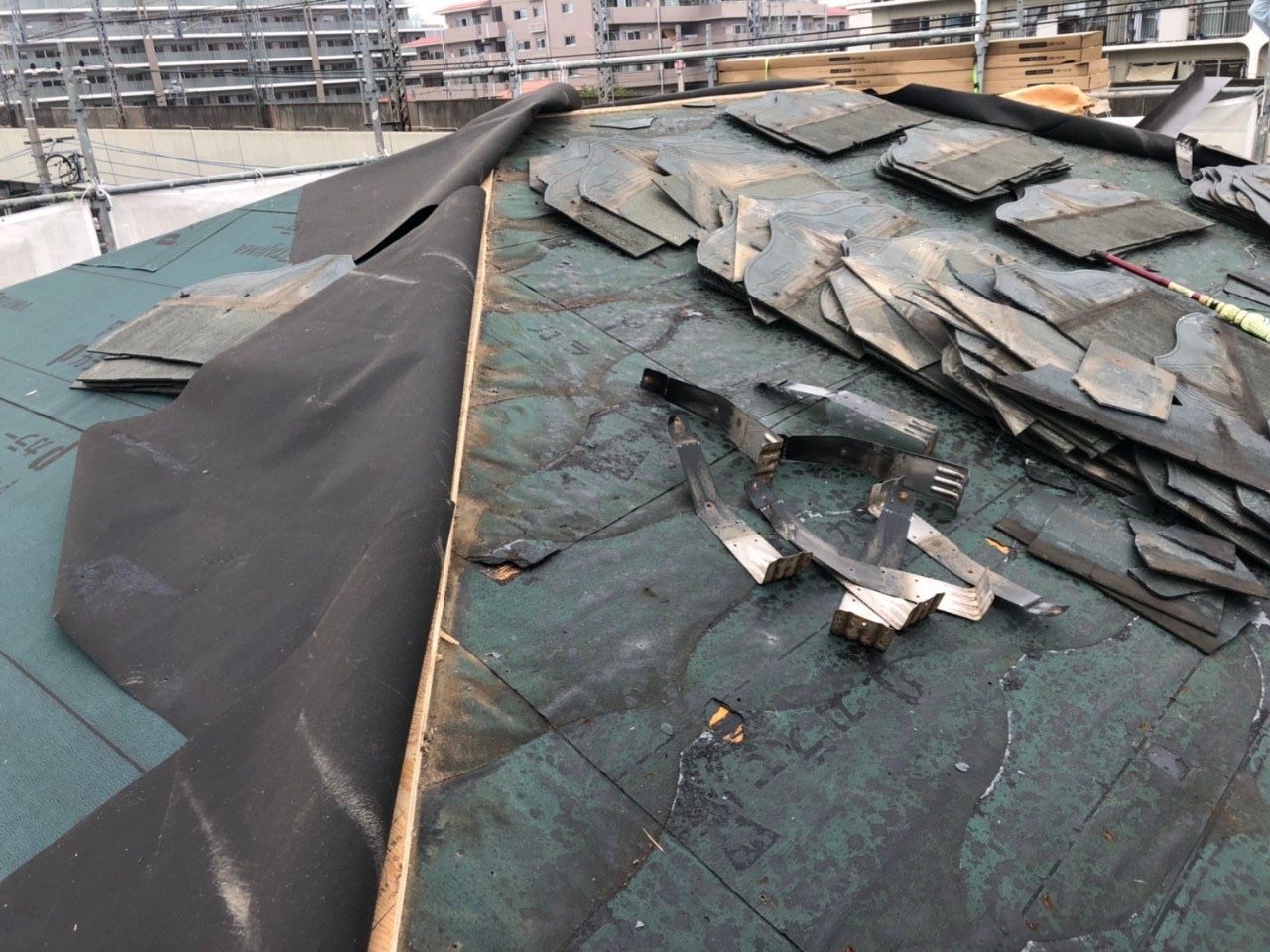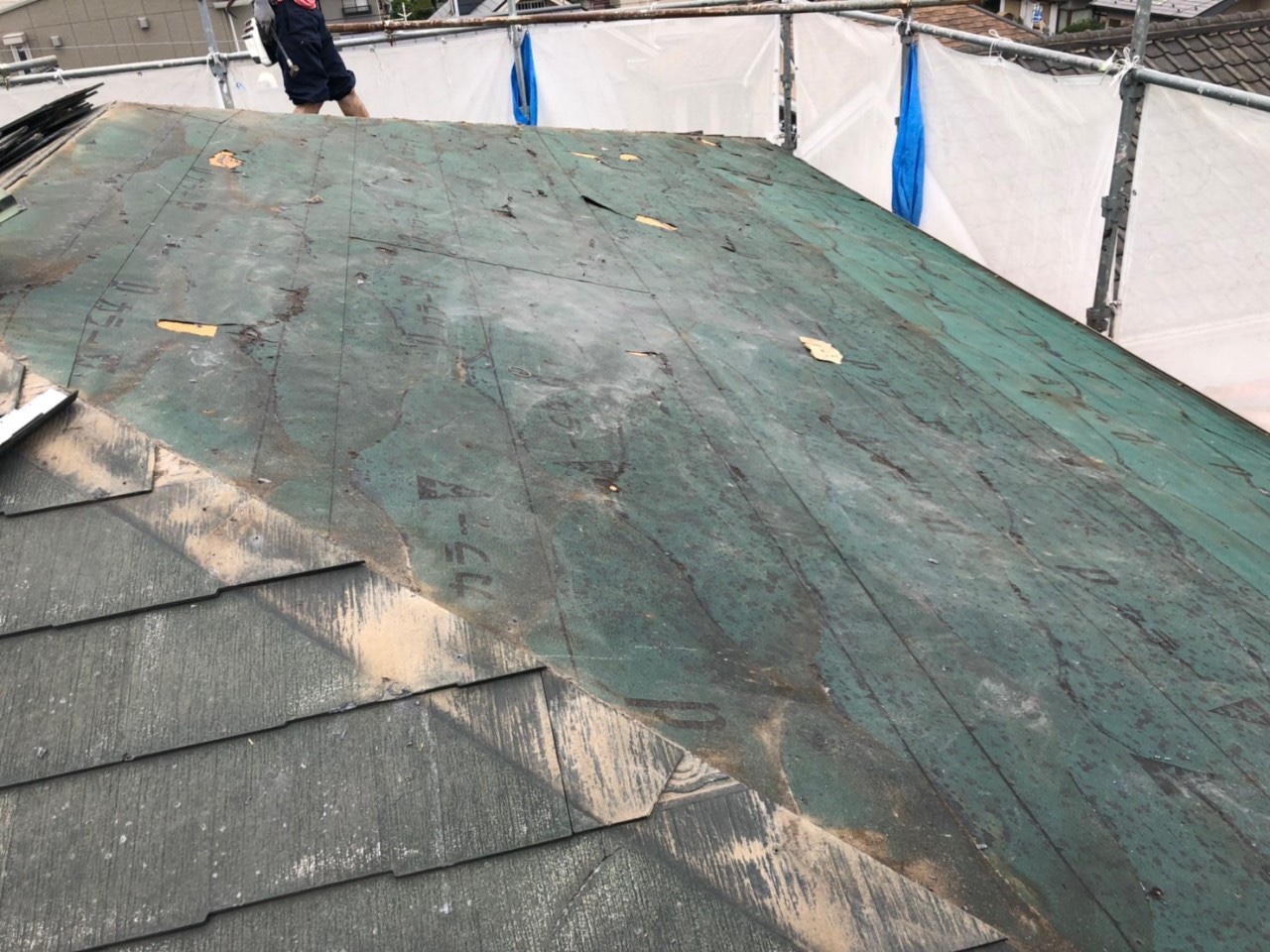 という事で、既存の屋根材を撤去して吹き替え工事を行う事になりました❗️
