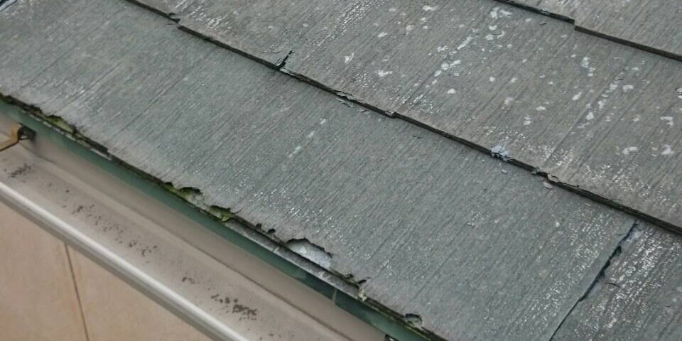 積層状に先端より割れてきます。 高圧洗浄すると粉々になって大惨事になり塗装もできませんT_T