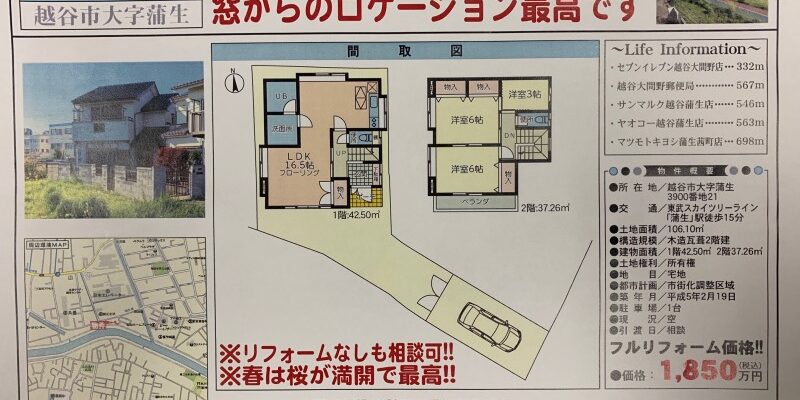 只今 越谷市蒲生にて好評販売中の物件のご紹介です。