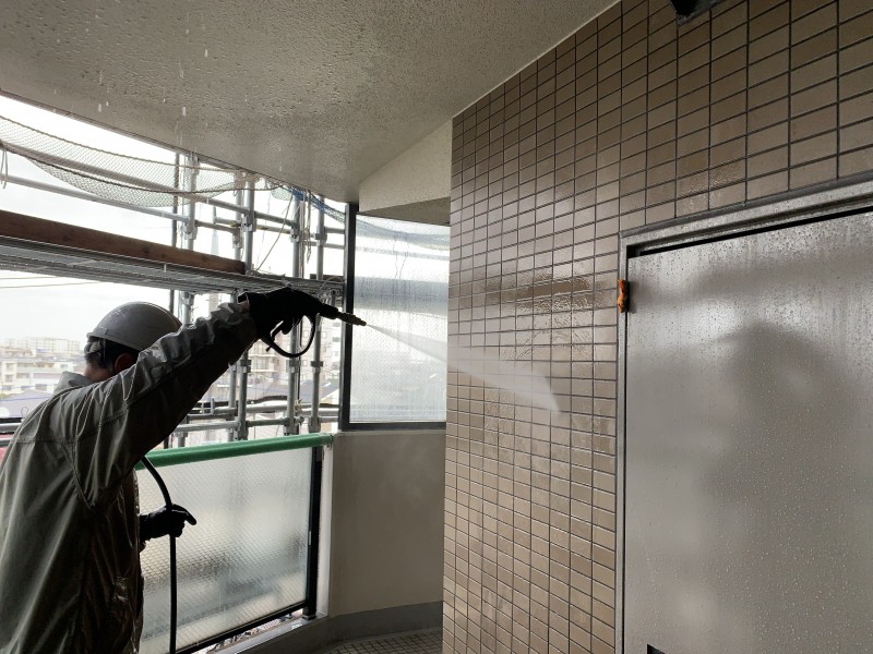 3月192022塗装職人ブログ施工事例 2月初旬から着工しました春日部市某所の大規模改修工事はご入居者様をはじめ関係者様のご協力のもと、只今 絶賛進行中でございます。 下地補修も進行して、各部の高圧洗浄工事に移行しております。 皆さまのご協力に感謝致しまして、 本日も一生懸命作業を進めてまいり たいと思います。 宜しくお願い致します。