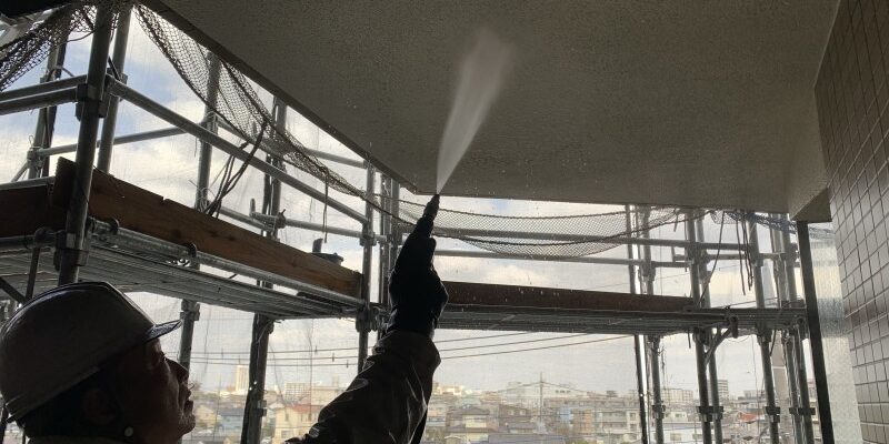 この度、マンション一棟丸ごと打ち放し塗装施行中でございます。
